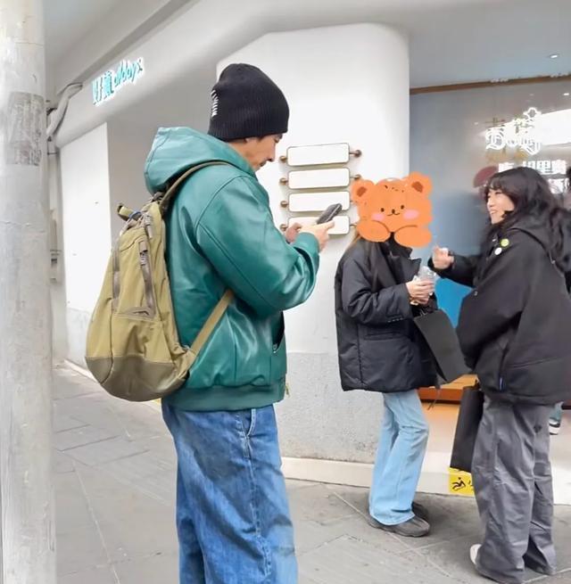 贾静雯带着两个小女儿进了一家小酒馆,老公修杰楷则是在店外等候。修杰楷穿了一件绿色皮衣,体态和气质比较前几年,似乎变得更成熟了。修杰楷背着背包,拿手机正在回复信息。